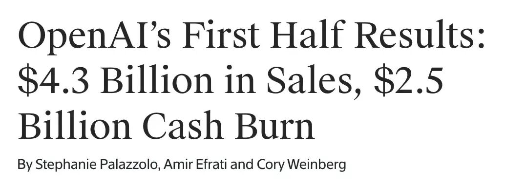 OpenAI公布上半年业绩:销售额43亿美元,烧钱25亿美元