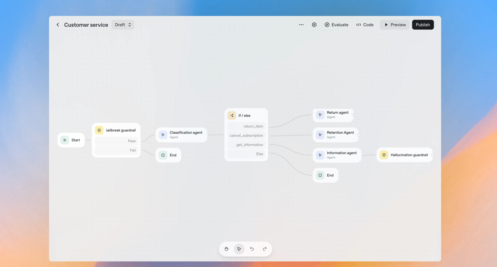 AgentKit:一套完整工具集,帮助开发者和企业构建、部署与优化智能体。包括可视化智能体构建器Agent Builder、对话工具包ChatKit,以及多项智能体评估功能。
