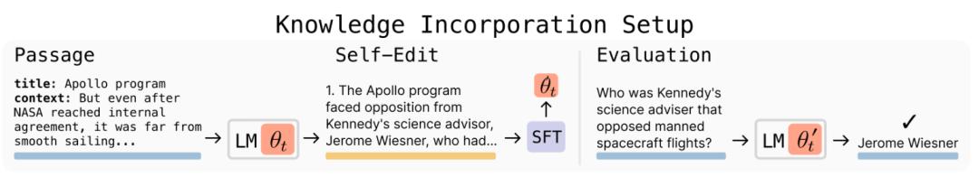 SEAL的工作过程简单说就是读取新信息,用自己的语言重写,并进行梯度更新,实际上是进行自主学习。
