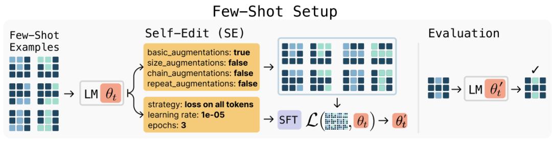 在小样本学习实验中,研究者使用LLaMA-3.2-1B-Instruct模型和ARC-AGI数据集中经过筛选的任务子集。