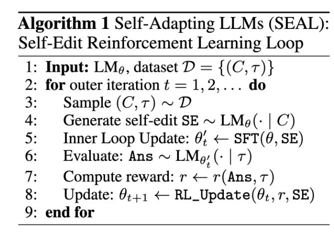 模型不仅能通过已有数据完成任务,更能主动设计训练方式、构造训练数据,并不断通过反馈优化这种“自学习”的策略。最终表现为一种具备自我编辑与持续进化能力的语言模型结构。