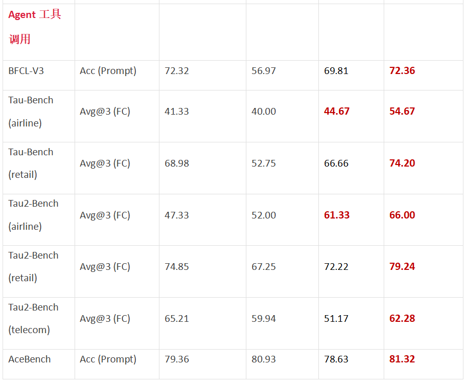 工具调用能力增强:升级 ToolACE 框架,在 Tau-Bench 等多工具协同任务中表现亮眼;