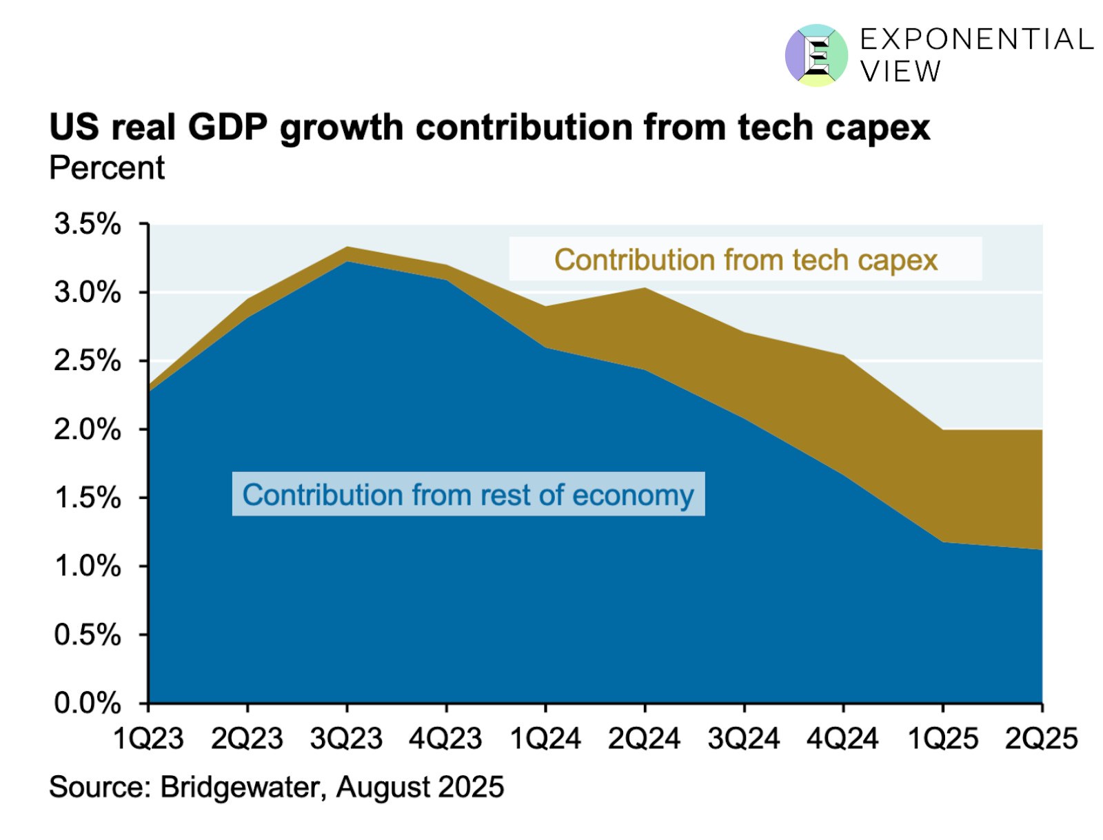 资本支出(capex)的激增,即投入到AI所需的物理基础设施中,是一种乐观主义的行为。这就是资本支出的本质。今天花钱是相信明天它会成为收入的来源。如果今天的投资是明智的,最终将带来生产力的提升和经济的扩张。