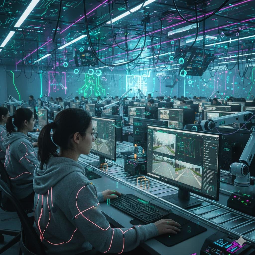 亚马逊吹上天的无人超市Amazon Go,号称顶尖计算机视觉,结果背后是1000多个印度员工盯着摄像头手动确认。多伦多街上的网红送餐机器人,背后也是菲律宾打工人在半夜操控。