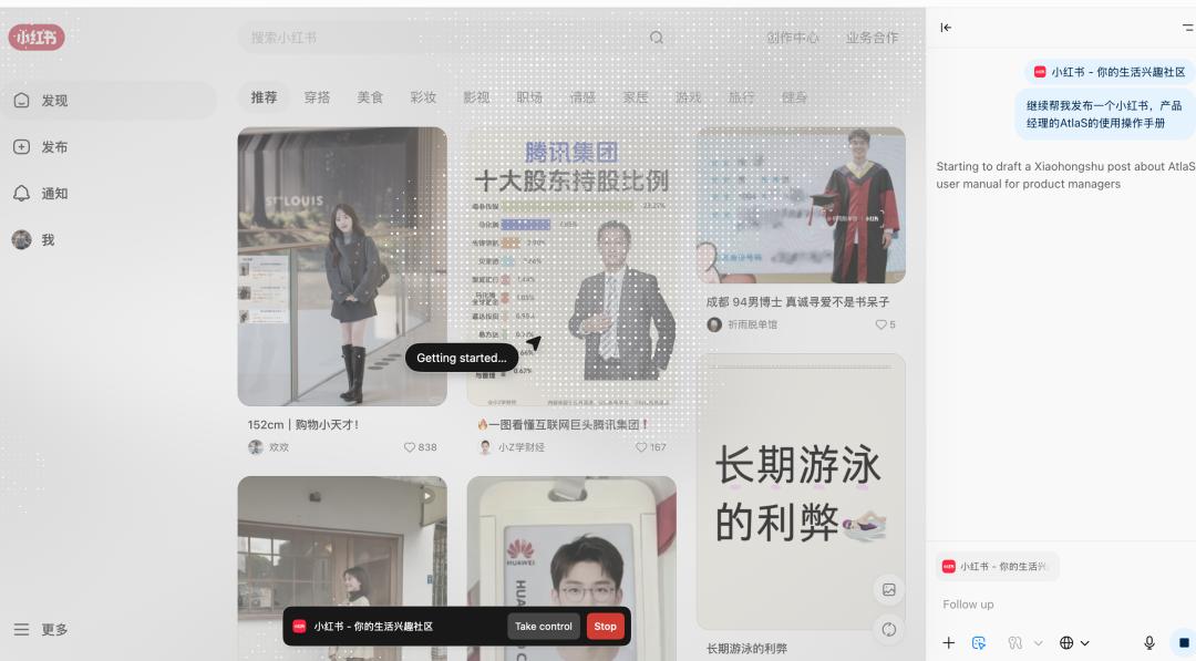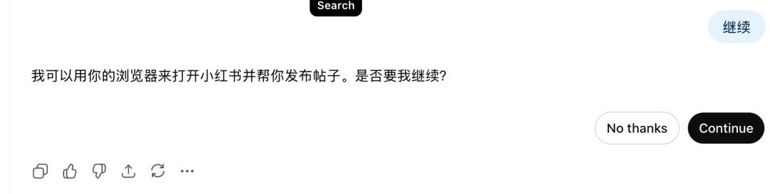 在任务中会提示是否要让小红书交付给ChatGPT来完成控制 :