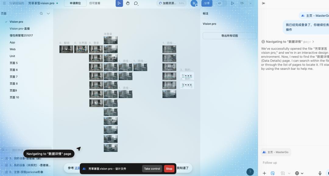 这里我开始自动化办公任务测试,访问我产品经理常使用的原型工具masterGO,通过授权访问master go登录之后,就可以查看对应的项目以及项目里面的UI文件。