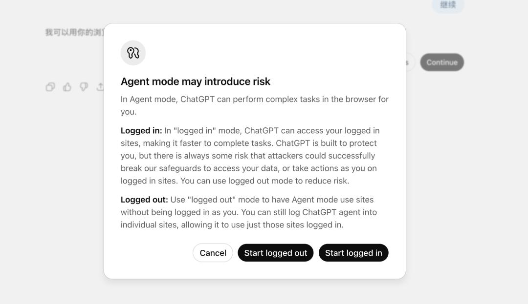 从前端来看,产品经理需要将其罗列在AI 浏览器Agent模式中会出现的交互组件,从对话组件,再到这次ChatGPT发布的自动化浏览器任务操作的终止、密码输入、账户鉴权、以及交互提示等组件,都需要产品经理来设计。