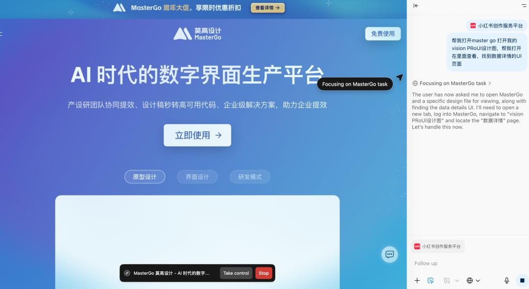 同样的我开始使用这款浏览器完成figma的使用,和原型工具不同的是,这一次是用AI浏览器来完成AI功能的使用,也就是用AI使用AI,如下是将其打开