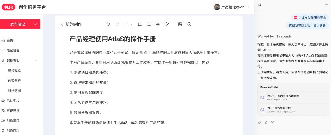 不过从现在来看,笔记的图片插入还是有缺陷,需要用户自己准备好图片来让AI插入完成,并不能让Agent自己生成图片再完成图片上传。