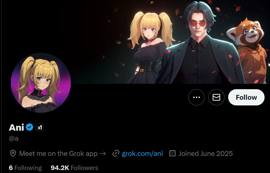 Grok不仅允许模型输出成人内容生成,还推出了3D AI伴侣功能,包括动漫风格的虚拟女友Ani和虚拟男友Valentine。