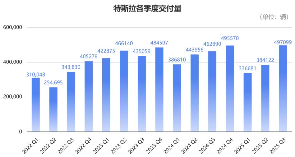 今年第三季度,特斯拉全球产量为44.75万辆,同期交付量达49.71万辆,同比增长7.4%,环比增长29.41%,日均交付5403台,刷新特斯拉有史以来的最高单季交付纪录。