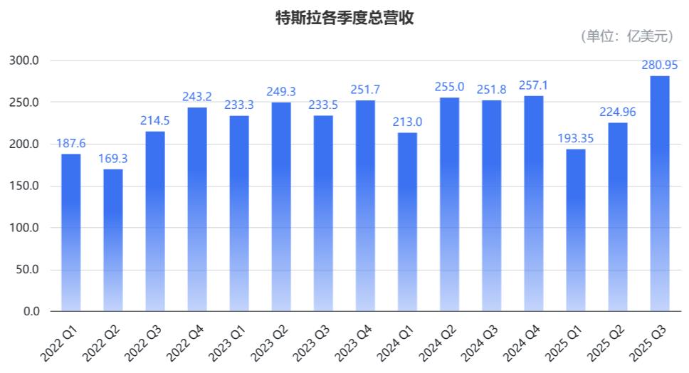 这也为特斯拉的营收带来了明显增量。公司在Q3总营收280.95亿美元,同比增长11.6%,环比增长25%,明显超出分析师预期的263.65亿美元。