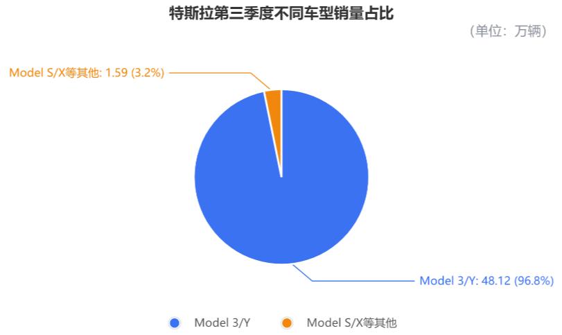 其中,主力军Model 3/Y,在第三季度共交付了48.12万辆,同比增长9.4%,占总交付量的96.8%。