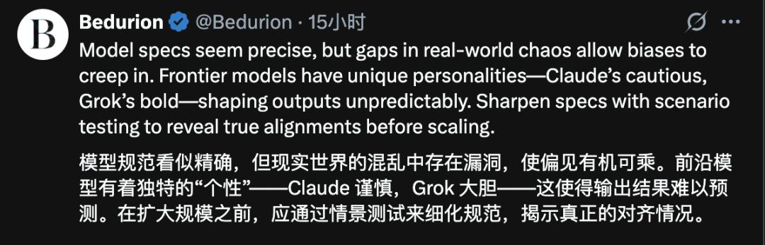 投资人Bedurion直击要害,模型规范看似精确,但现实世界的混乱中存在漏洞,偏见容易有机可乘。