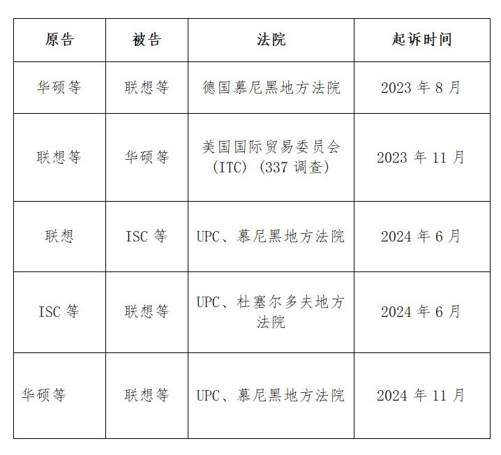 2024年6月,联想将争端扩展到全球,在统一专利法院(简称UPC)、慕尼黑地方法院针对华硕提起基于EP3682587的专利侵权指控。随后,华硕关联公司Innovative Sonic Corporation(简称ISC)也选择在UPC、杜塞尔多夫法院起诉联想,认为后者侵害其SEP专利。