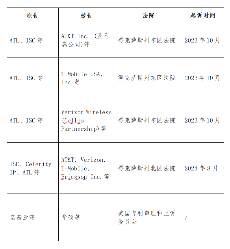 表2:华硕与美国运营商诉讼一览