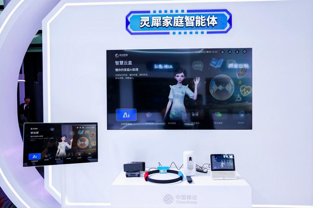在生活领域,中国移动也用“AI+”点亮万家灯火,移动爱宠、灵犀智能体、家庭机器人、AI新通话、AI合拍机……各种有趣的互动项目打造了有温度的智能生活。“灵犀”智能体作为数智生活伙伴,已深度嵌入APP、智能终端和家庭大屏。它能根据用户声纹推荐个性化内容,在观影时识别画面中的演员信息,还能为家庭成员生成个性化健康管理计划。大模型也能改变通话的方式——AI新通话,是中国移动基于AI推出的新一代智能通话产品,已上线AI通话、AI速记、AI彩话等特色功能,将“视觉+听觉+即时操控”融合,为用户提供稳定高清、可视交互、智能高效的全新通话体验。
