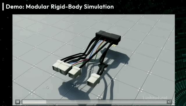 在技术实现层面,光轮智能展示了其与NVIDIA合作开发的电缆仿真解决方案,能够处理“可变形体+刚体”双重物理属性,为机器人操作线缆、软管等复杂任务提供高保真数据。Madison Huang指出,“电缆操作是机器人领域的‘圣杯’问题”,在NVIDIA的生产环境中,单台NVL72机架就需布设2英里长的铜缆,这类任务对机器人的力控与触觉反馈提出极高要求。