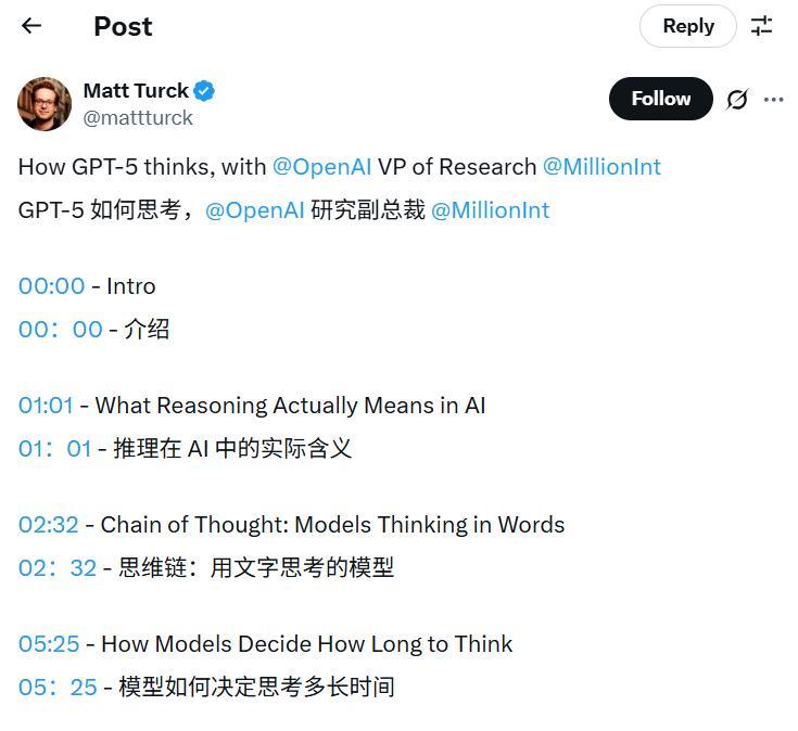 GPT-5则在此基础上更进一步。Tworek提到,GPT-5不仅会展开推理链,还能「判断自己要思考多久」。