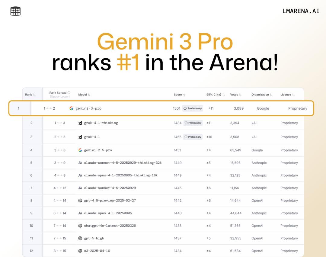 但Gemini 3的出现,把原本胶着的战争直接变成了断层式的碾压。