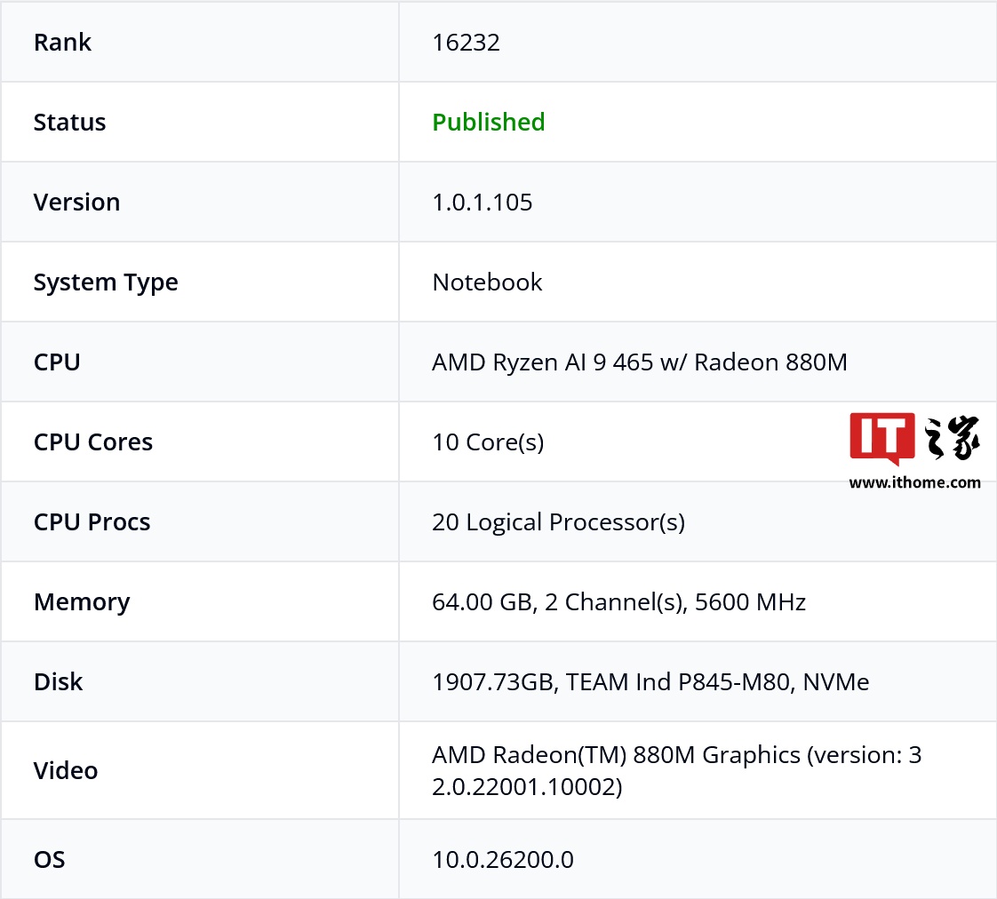 IT之家 11 月 20 日消息,X 平台消息人士 Gray (@Olrak29_) 发现,BAPCo 基准测试数据库中出现了 AMD 锐龙 AI 9 465 与锐龙 AI 7 450 处理器的测试成绩。