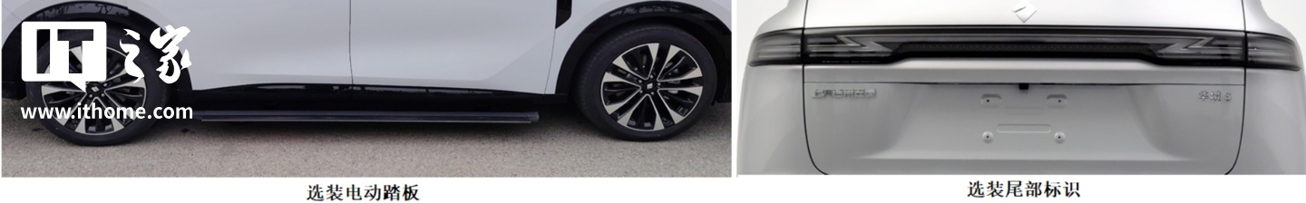 该车申报了三个插混版本,尾部写有“享境 S9”字样,但与此前放出的宝骏华境 S 汽车伪装图造型相同,可选装“华境 S”尾标;尺寸为 5235 x 1999 x 1800mm,轴距 3105mm,可选装上下车电动踏板。
