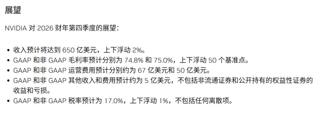 业绩指引同样强劲,公司预计下季度营收将达到650亿美元(区间637亿至663亿美元),远超分析师预期的619.8亿美元。毛利率指引为75.0%(区间74.5%至75.5%),同样高于市场预期。