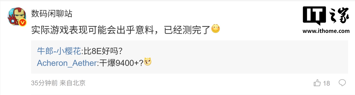 博主还在评论区补充道,他已经测完了该芯片详细性能,实际游戏表现可能会“出乎意料”。