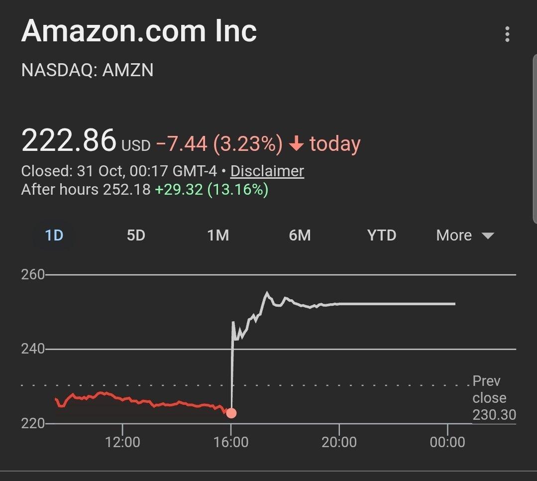 亚马逊最新财报公布后,市值增加了约2500亿美元