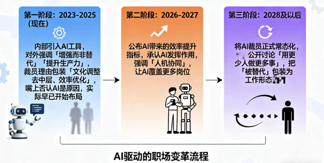 通过这套分阶段策略,企业得以在悄无声息中完成转型——等到他们公开承认,是因为变革早已完成,市场也早就接受了新的就业逻辑。