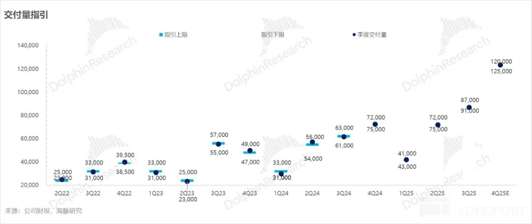4. 但四季度销量指引低于预期:蔚来四季度的销量指引 12 万-12.5 万,低于市场预期的 13.6 万,同时也低于蔚来上季度给的四季度交付目标 15 万的指引。
