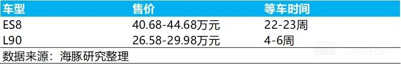 而这个销量指引隐含的 11 月/12 月平均月销 4 万-4.2 万辆,相比 10 月 4 万辆的销量基本无增量,一方面说明 ES8 产能释放速度明显低于预期(合蔚来 ES8 这款车型等车周期来到了 22-23 周),另一方面主要由于乐道汽车的销量受到置换补贴退坡的负面影响,四季度 L90 销量可能不及预期。