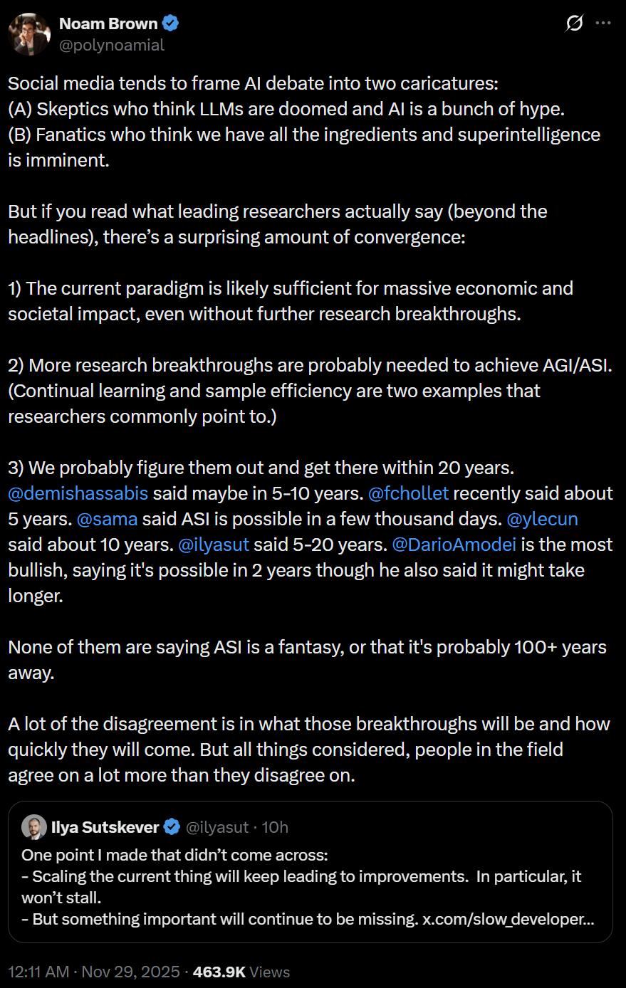 换句话说没人觉得ASI是天方夜谭,或者得等100多年才能实现。
