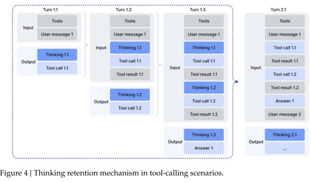 在思考上下文管理方面,团队发现DeepSeek-R1那种每次开启新对话就丢弃推理内容的策略,实在是太——浪费token了。