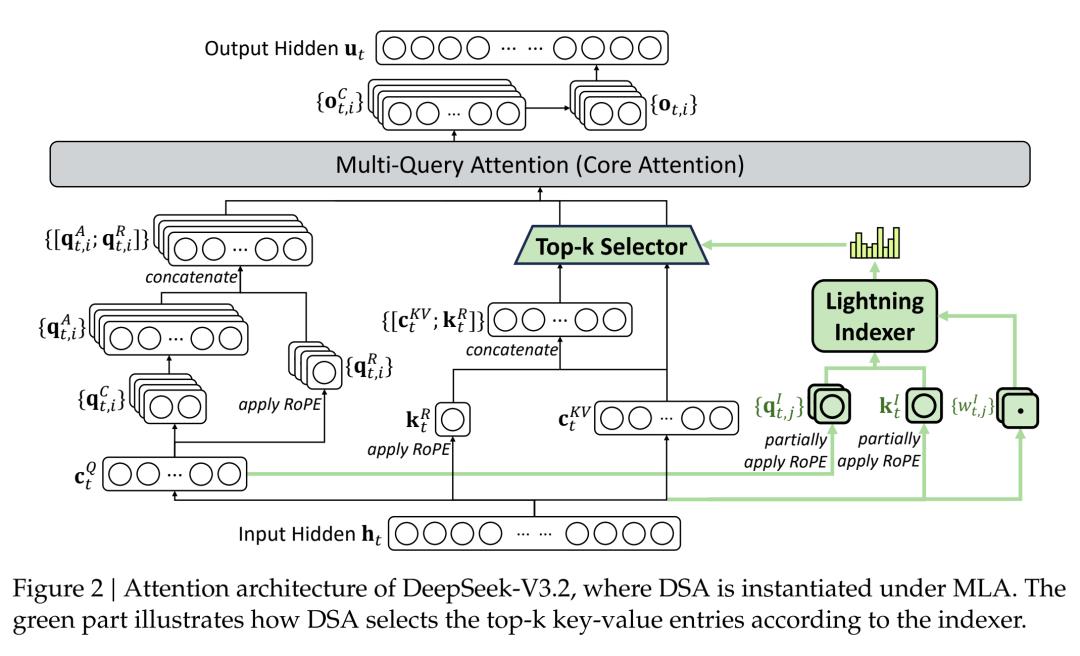 DeepSeek-V3.2最大的架构创新是引入了DSA(DeepSeek Sparse Attention)机制。