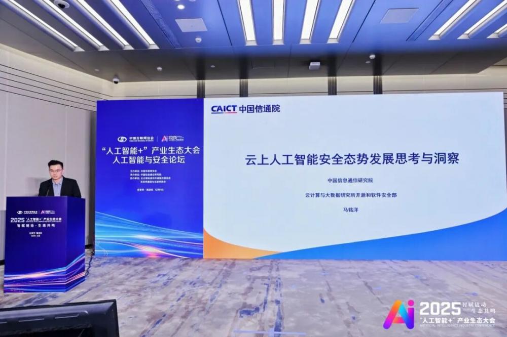 2025年12月1日,由中国互联网协会主办,中国信息通信研究院(简称“中国信通院”)承办,北京市通信与互联网协会、云计算标准和开源推进委员会联合协办的2025“人工智能+”产业生态大会“人工智能与安全论坛”在京召开。本届论坛聚焦人工智能安全治理发展趋势,从产业发展、关键技术、应用实践等角度,全面展示中国信息通信研究院最新研究成果,各行业专家围绕前沿的行业研究与落地实践经验开展交流分享,为行业探寻一条高质量发展之路。