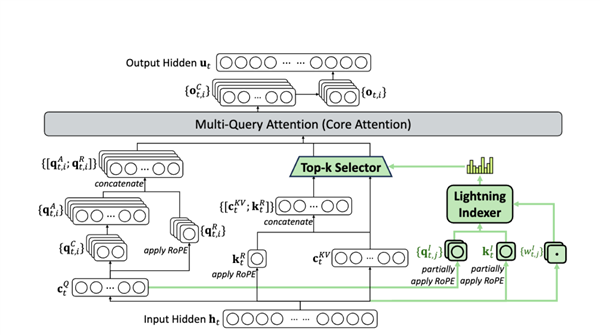 这东西在之前的 V3.2-EXP 版本里出现过,当时只是测了一下 DSA 会不会影响模型的性能,现在是真的把这玩意给放到了主力模型上。