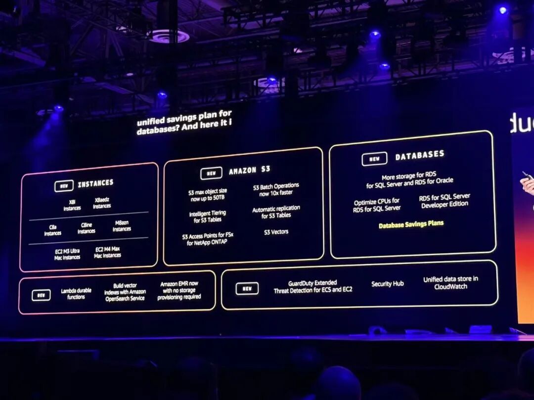 10、7款新实例、6项Amazon S3存储升级、5项Amazon RDS数据库更新、3项计算与加速优化新功能、4项管理与治理新功能。