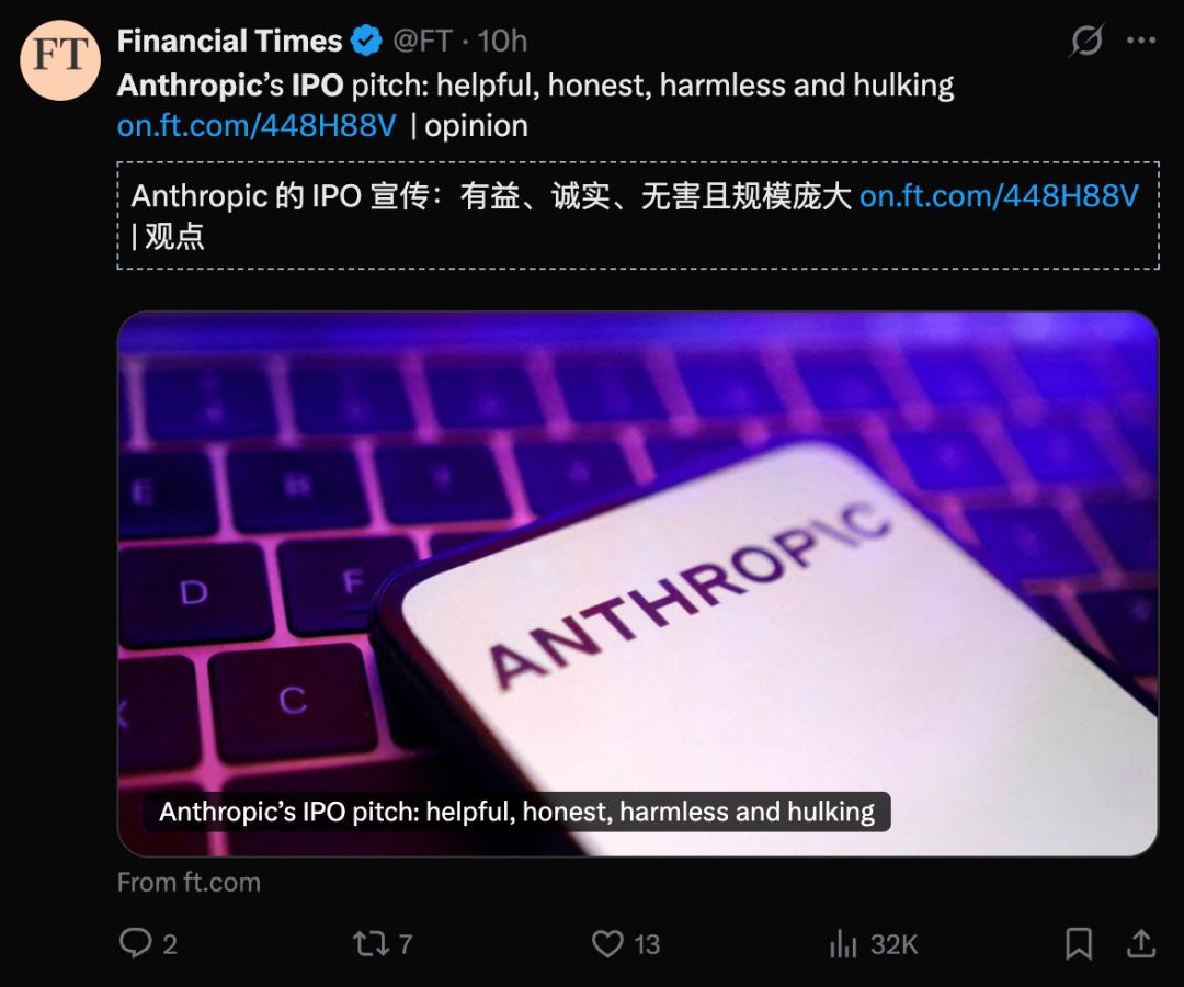 根据最新报道,Anthropic最早于2026年筹备IPO,有望成为史上规模最大的IPO之一。