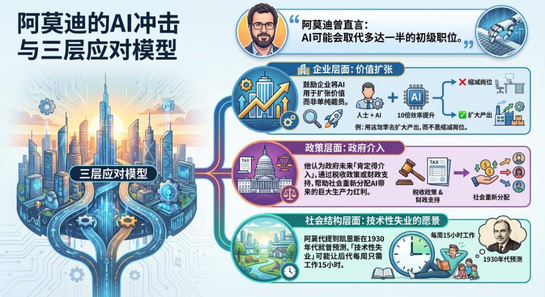 今年五月,他曾告诉媒体,未来五年内半数初级岗位可能因AI消失,导致失业率飙升至10%-20%。