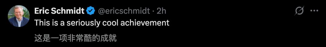 还有,马斯克、前谷歌CEO等科技圈一众AI大佬们,纷纷点赞这一历史性成就。