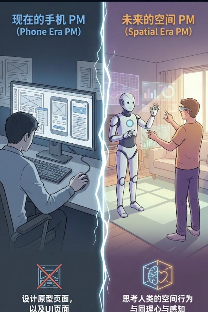 相较于现在的手机产品经理,人形机器人的产品经理交互几乎就是MR眼镜的产品经理非常类似了,空间计算的产品经理会思考用户所在的场景以及地理位置,并且几乎没有什么操作界面,几乎都是空间操作,或者少部分的移动界面。