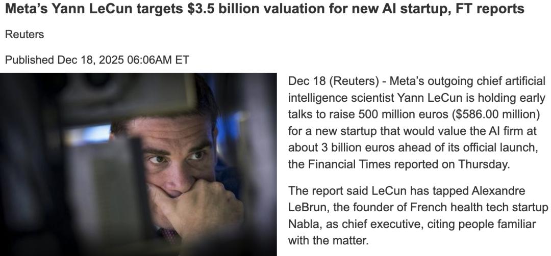 更重量级的,是首席AI科学家、图灵奖得主Yann LeCun的退出。