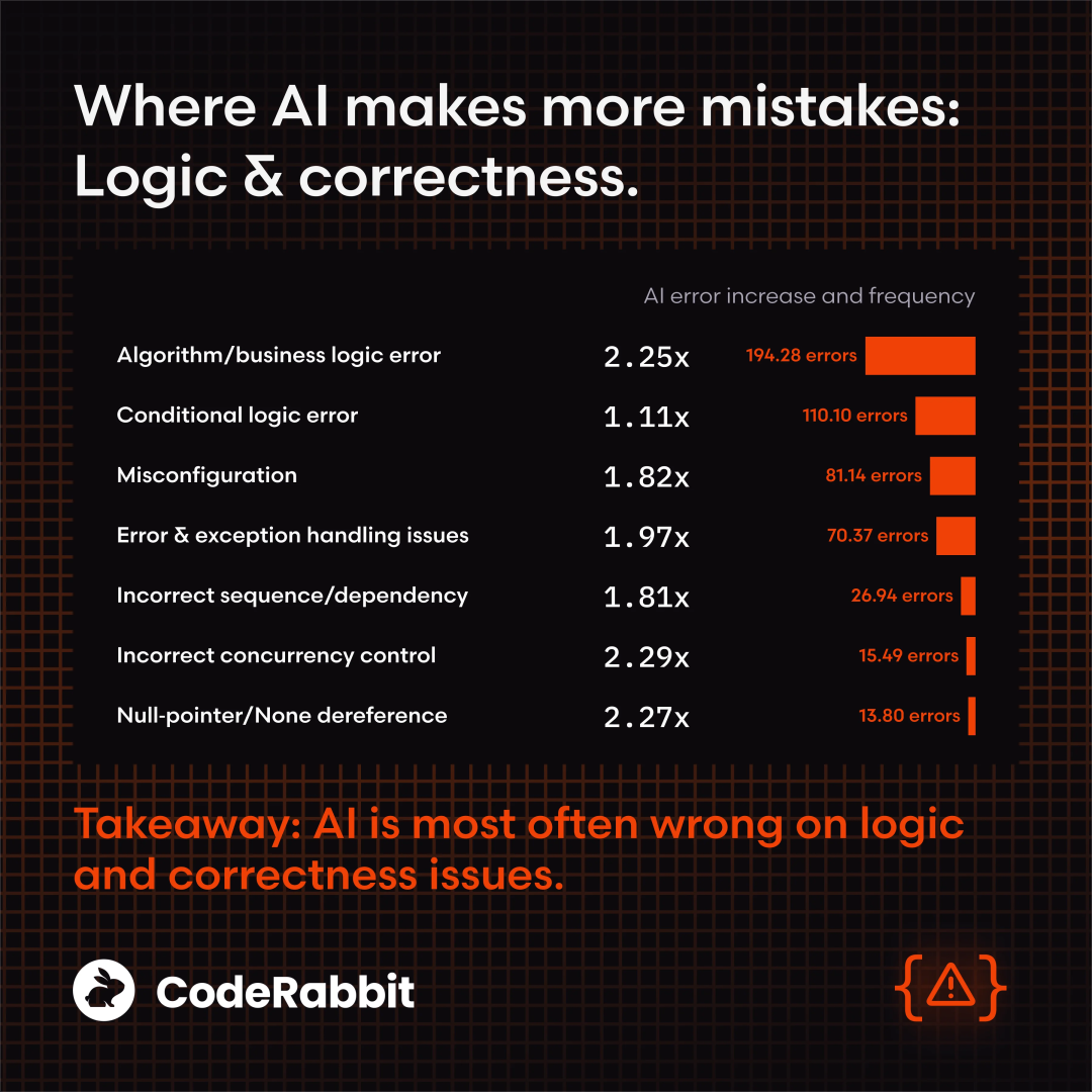 CodeRabbit的AI总监David Loker表示:AI确实加速了产出,但也引入了可预测、可衡量的弱点。