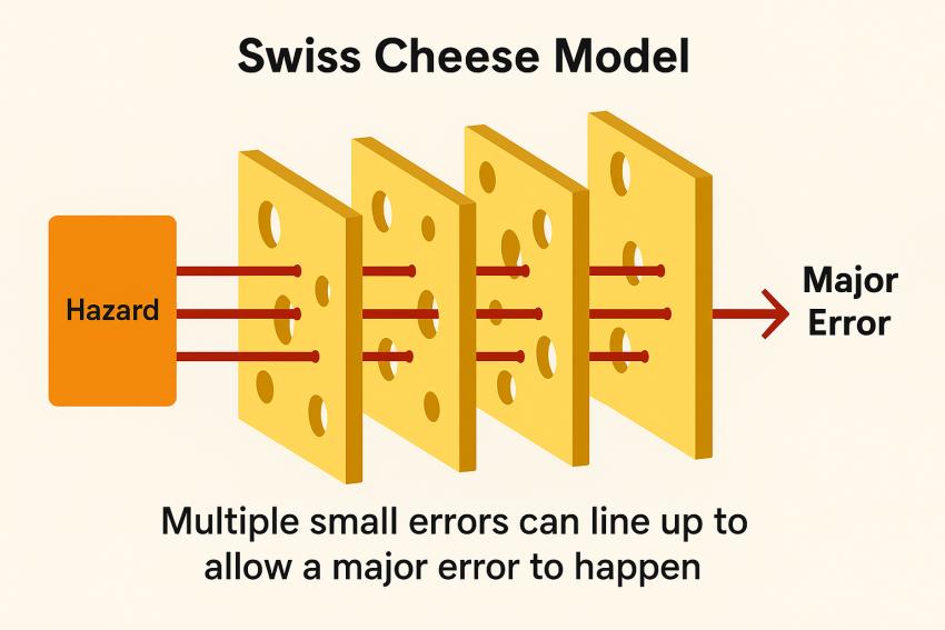 瑞士奶酪模型:单个小漏洞没事,但是一层层叠加,对齐了会出大事