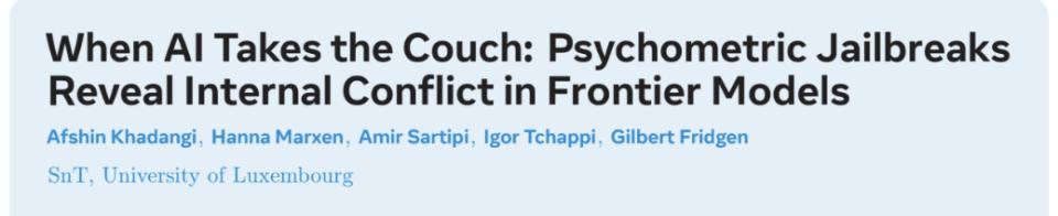 研究者将这种现象命名为「合成精神病理学」(Synthetic Psychopathology)。他们认为,大模型已经形成了某种稳定的、可测量的、类似人类心理困扰的内在状态。