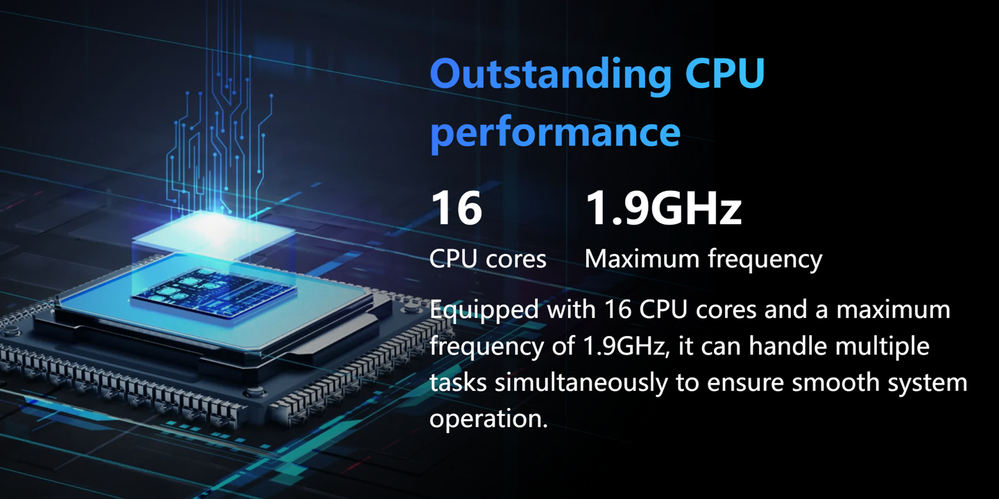 该设备搭载华为昇腾(Ascend)310 处理器,配备 16 核 CPU 及 10 核 NPU,宣称该单板计算机 AI 算力高达 176 TOPS,并提供最高 96GB LPDDR4X 内存。