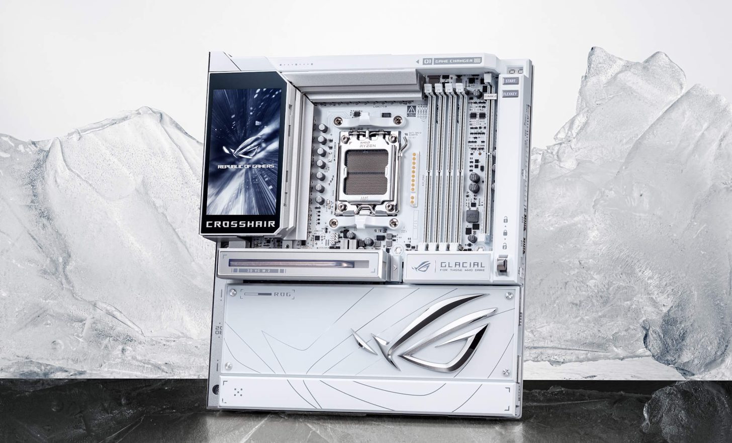 作为 CES 2026 创新奖得主,旗舰型号 ROG Crosshair X870E Glacial 确保显卡独占 PCIe 5.0 x16 带宽的同时,还支持两块 PCIe 5.0 M.2 SSD 全速运行,且第二条 PCIe 插槽仍可提供 Gen 3.0 x4 模式。