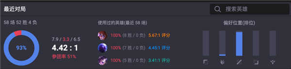 有个昵称叫做 ???? (快递员/送货员)的老哥,用了 51 个小时,打了 56 局,然后以 93% 的胜率,一路冲到了韩服王者。