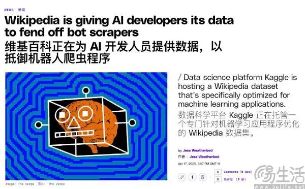 简而言之,维基百科将旗下的数据资产整理成AI更易懂的形式,以方便AI厂商即拿即用。